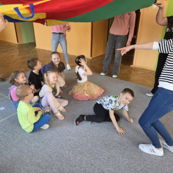 wspólna zabawa z wykorzystaniem chusty animacyjnej