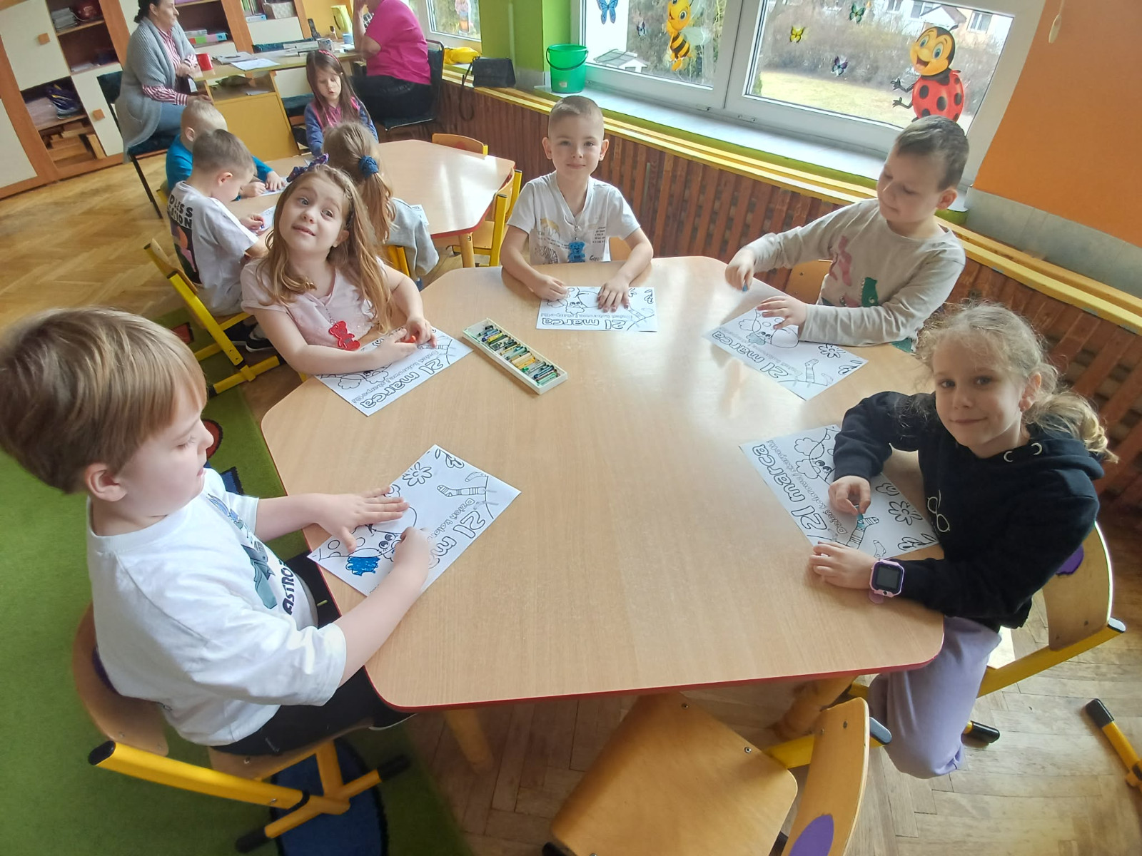 dzieci kolorują ilustrację