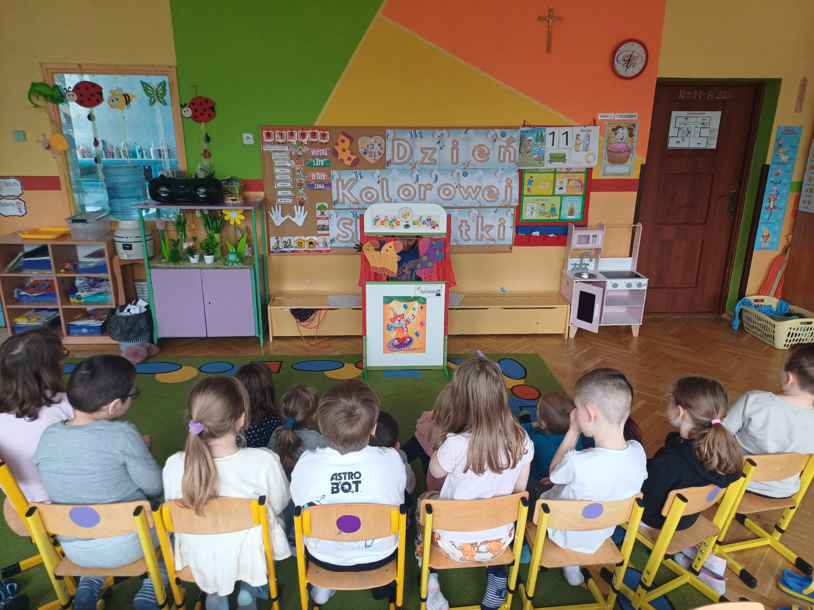 dzieci ogladają teatrzyk o skarpetkach