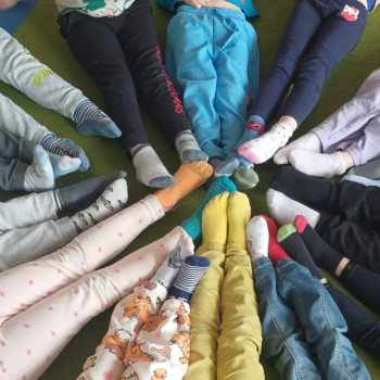 dzieci pokazują swoje skarpetki